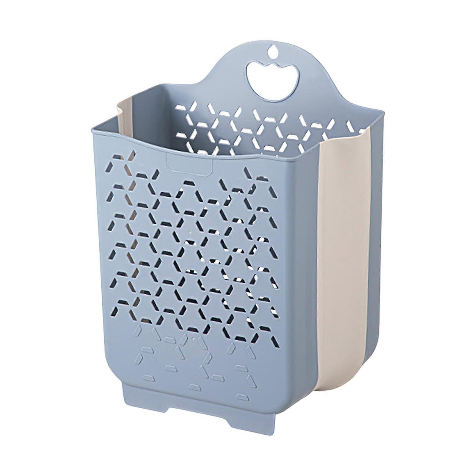 Wall-mounted Stable Standing Hollow Laundry Basket Folding Dirty Clothes Storage Bucket Bathroom Gadget-M,Light Blue