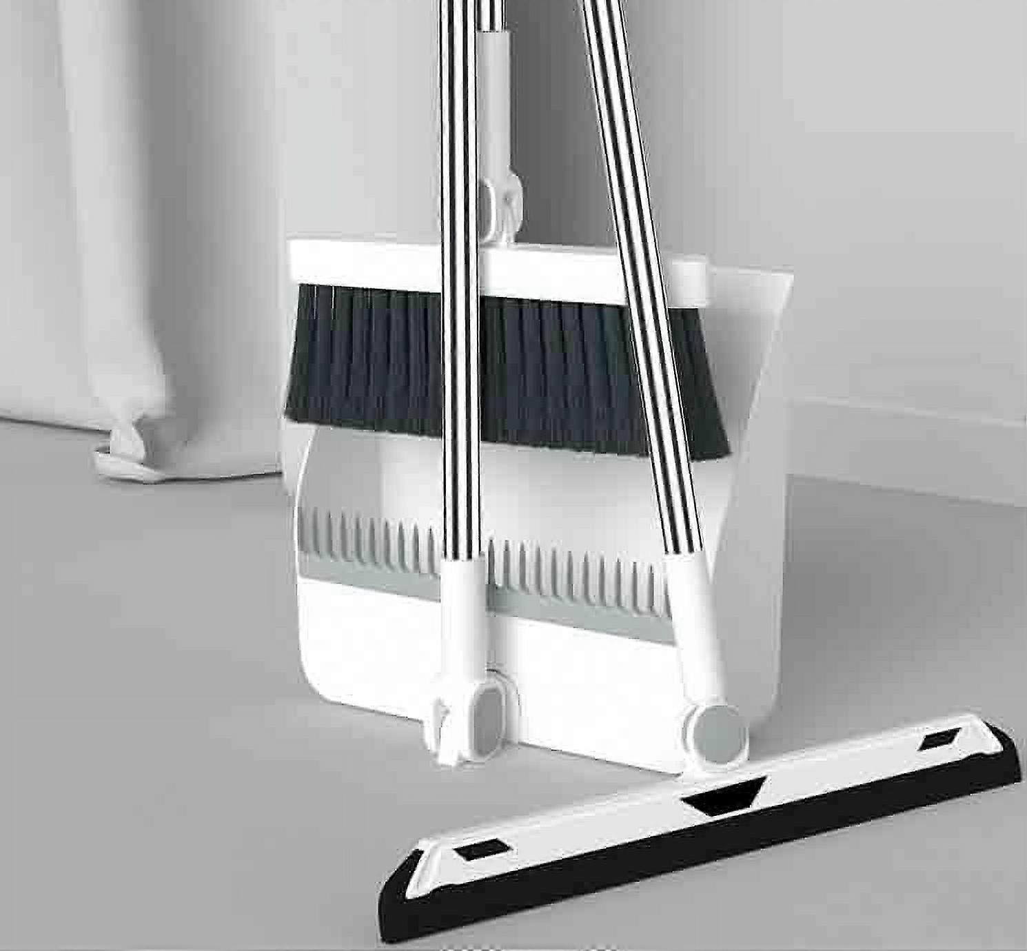 Quinlirra Broom and Dustpan Set with Long Handle, Heavy Duty Stainless Steel Standing Broom for Home Kitchen Use
