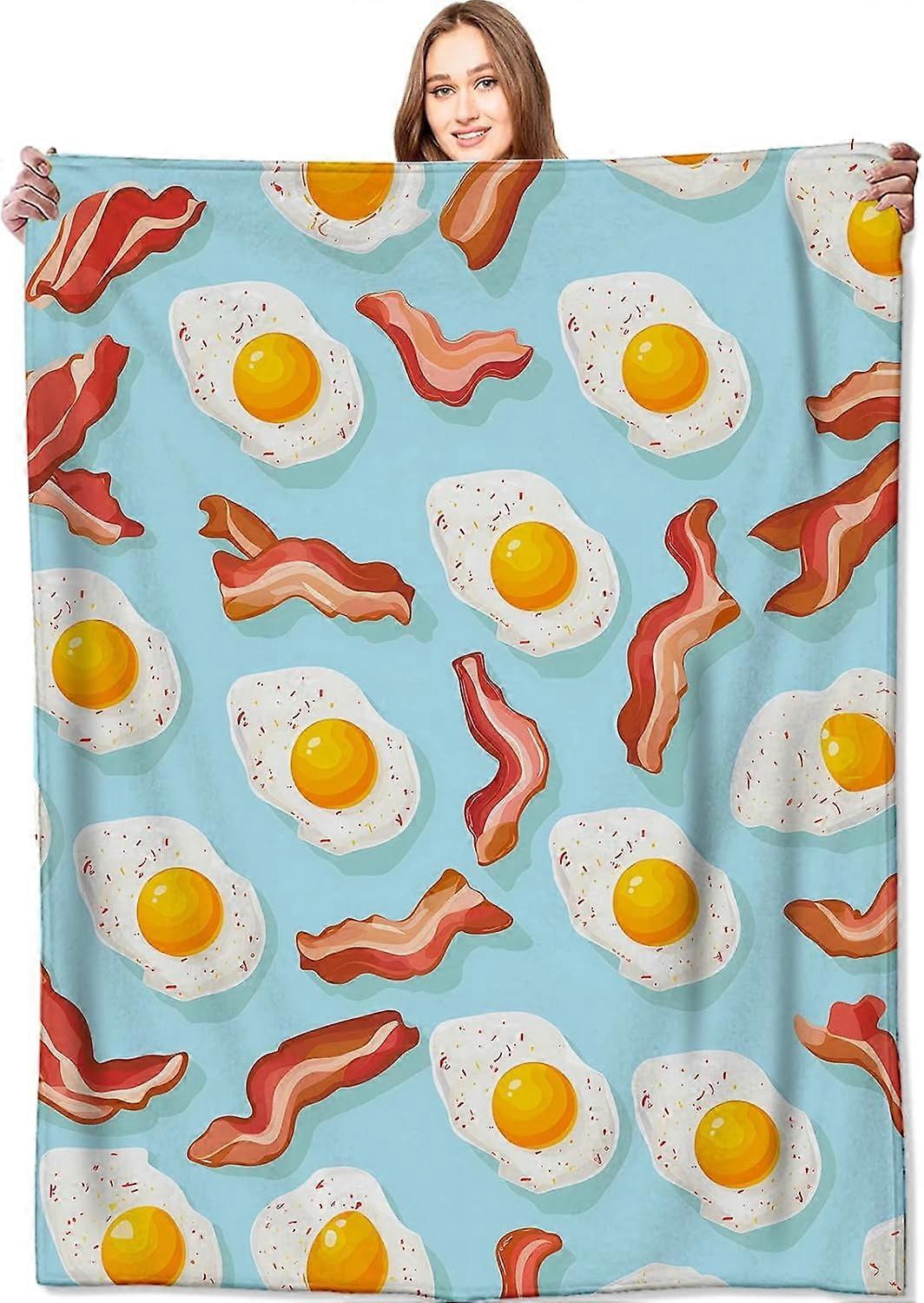 Bacon and Egg Blanket Fun Food Throw, Lightweight Soft Fleece, 40x50in, Gifts for Kids Woman Girls & Breakfast Lovers