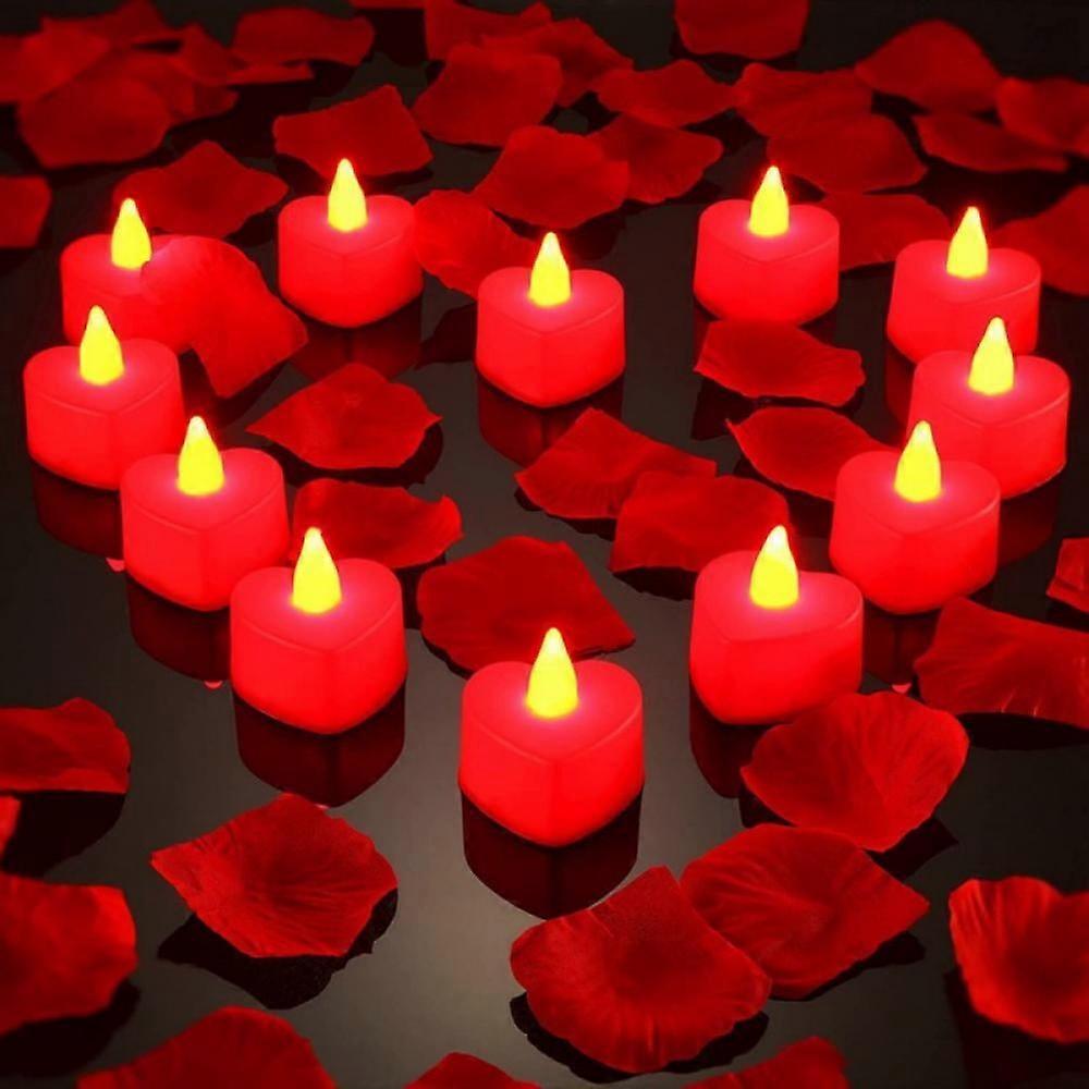 Heart LED Candles, 12pcs Red Tea Lights, Valentine Decor, Romantic Proposal, Anniversary & Wedding, compatible with warm ambiance