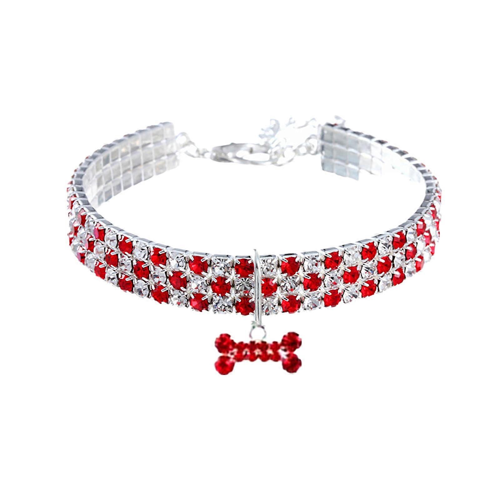 YUEHAO Pet Supplies Cute Mini Pet Dog Bling Rhinestone Chocker Collars Fancy Dog Necklace Watermelon Red
