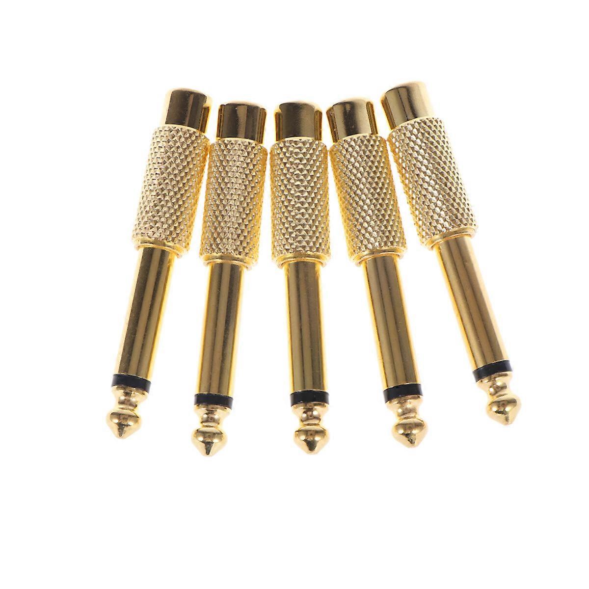 5Pcs 6.5 Av Conversion Head Male Mono Plug to RCA Female Stereo Audio Adapter Connector Gold Plated (Golden)