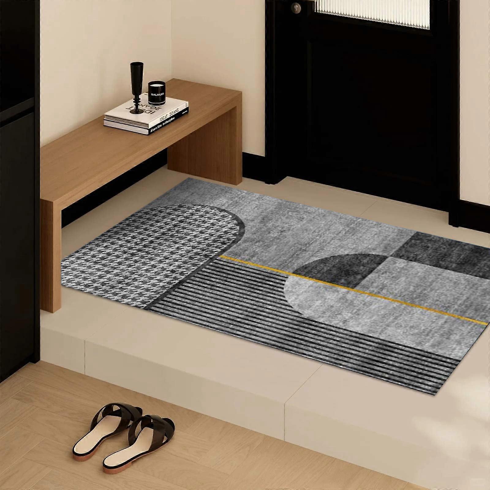 Geometric Pattern Crystal Velvet Carpet Wear-counteractive Bathroom Floor Mats Can Be Cut Suit The Entrance Bedroom Bathroom Size 31.4x19.6 Inches ✿Features: Product Name: Geometric pattern carpet ✿Material: Polyester ✿Product color: Gray ✿Product size: 80x50cm/31.49x19.68in ✿Packing size: 52x10x10cm/20.47x3.93x3.93in ✿Net weight: 320g/0.7lb ✿Gross weight: 320g/0.7lb ✿Product Description: ✿Practical design: The front is made of comfortable crystal velvet fabric, which is soft and delicate to the tactile, wear-counteractive and lasting. The reverse side has a plastic bottom with non-slip particles, which fits tightly to the tabletop, making it stable and not easy to move. It can also be cut to the size you want. ✿Captures Dirt And Wet: The sturdy woven topside and profound grooves effectively capture dirt, mud, and Wet; the door mat is designed to avoid unwanted debris from being tracked into your home. ✿Counteractive To Stains, Weather, And Fading: Designed to withstand various weather conditions, including snow, rain, mud, and sand; the topside is counteractive to stains and fading, ensuring long-lasting use both inside and outside your home. ✿Easy To Clean:The front door mat is designed for quick and effective cleaning using a vacuum or traditional brooms cleaning way. Additionally, tapping and shaking the back of the doormat helps clear up residual debris. For a further clean, rinse it with a garden hose and hang the mat in a ventilated place or dry it in a dryer. This versatile cleaning way ensures that your doormat stays clean and tidy, prepare to welcome guests. ✿Versatile use: The mat seamlessly mix style and practicality, ideal for indoor spaces like house, living areas, lobbies, and offices, ensuring cleanliness. Equally suited for outdoor use, these mats excel in high-traffic areas such as front doors, sidewalks, terraces, garages, barns, and driveways. Crafted from tough materials, they are both heavy-duty and soft, offering flexibility. ✿Package Included: ✿1× carpet ✿ ✿ Material: Polyester ✿ Product color: Gray ✿ Product size: 80x50cm/31.49x19.68in ✿ Packing size: 52x10x10cm/20.47x3.93x3.93in ✿ Net weight: 320g/0.7lb
