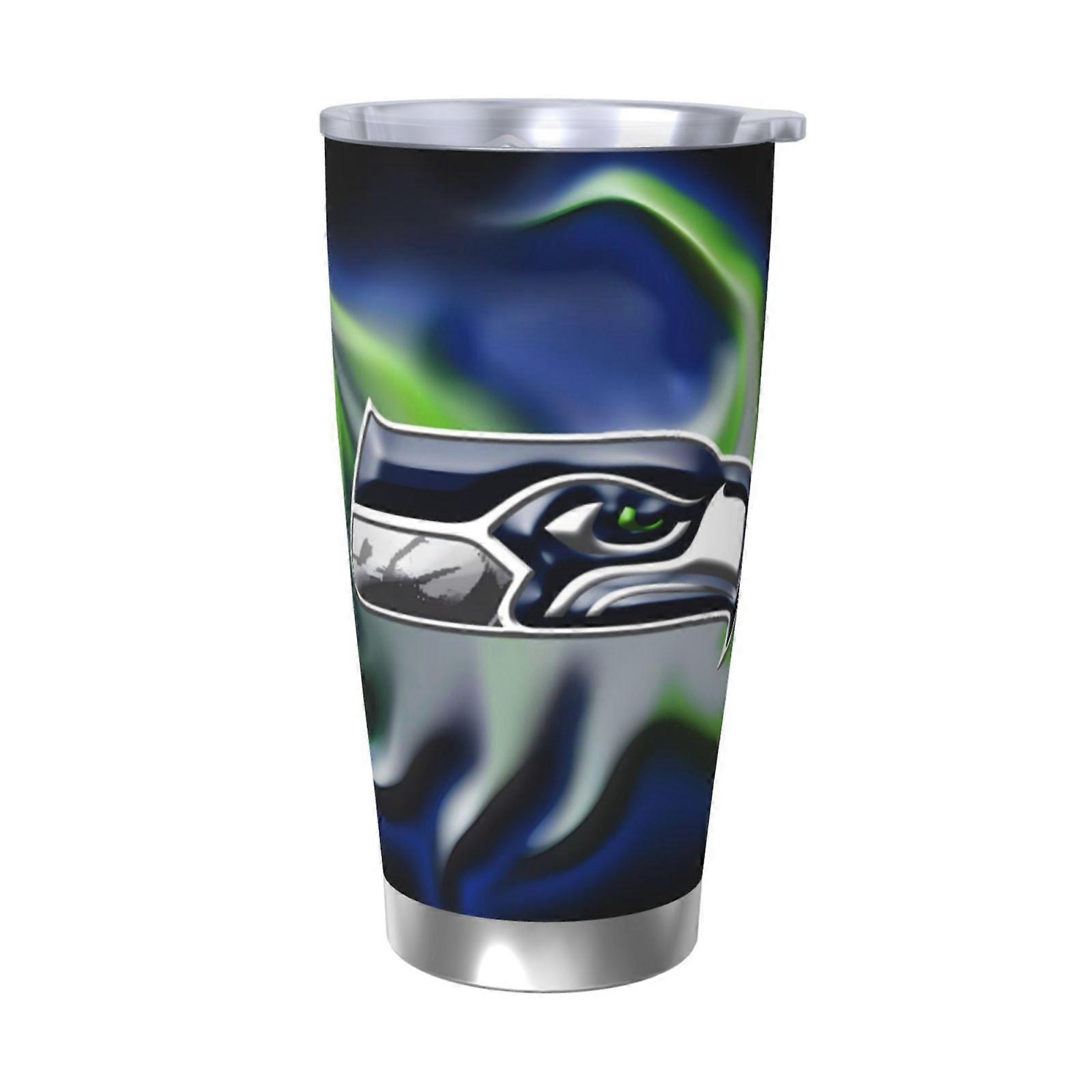 Seahawks Football Team Theme 20oz Stainless Steel Thermos Cup with Lid & Straw, Compatible with Car Cup Holder, for Hot & Cold Drinks