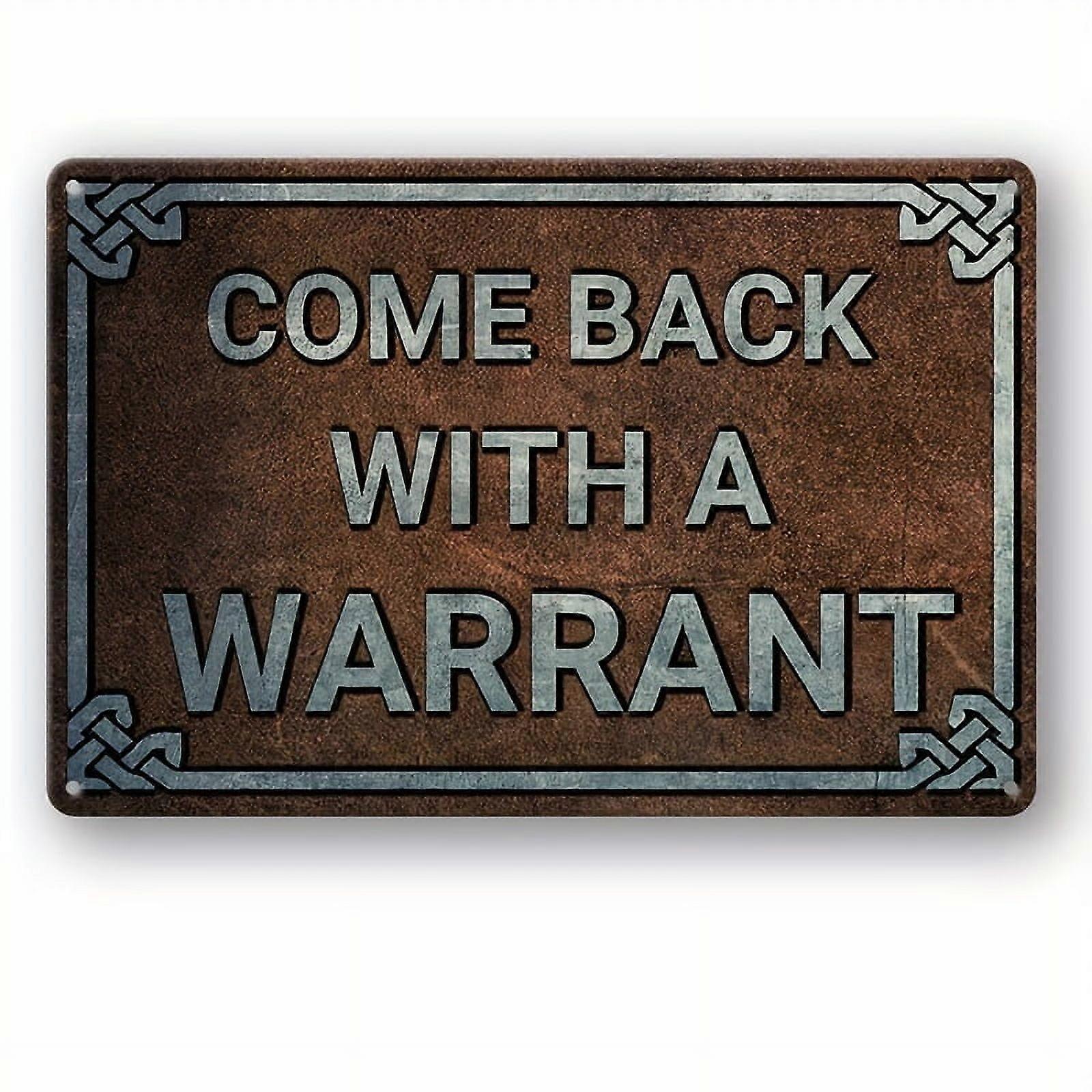 "1pc, Vintage Metal Tin Sign - ""Come Back with a Warrant" "Funny Retro Art Wall Decor for Home, Kitchen, Bedroom, Man Cave - 12x8in"