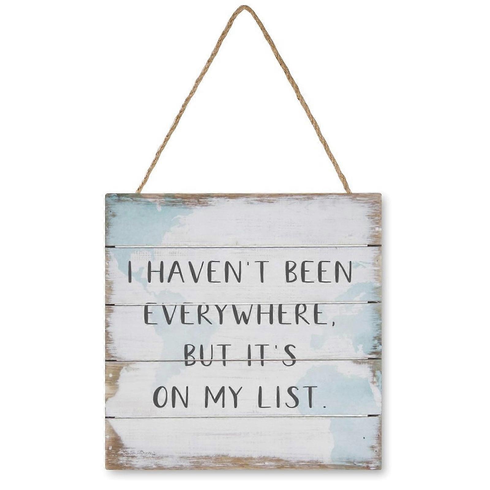 Funny Wooden Sign: I Haven't Been Everywhere But It's On My List - 12x12 inch Farmhouse Wall Decor, Inspirational Quote Plaque