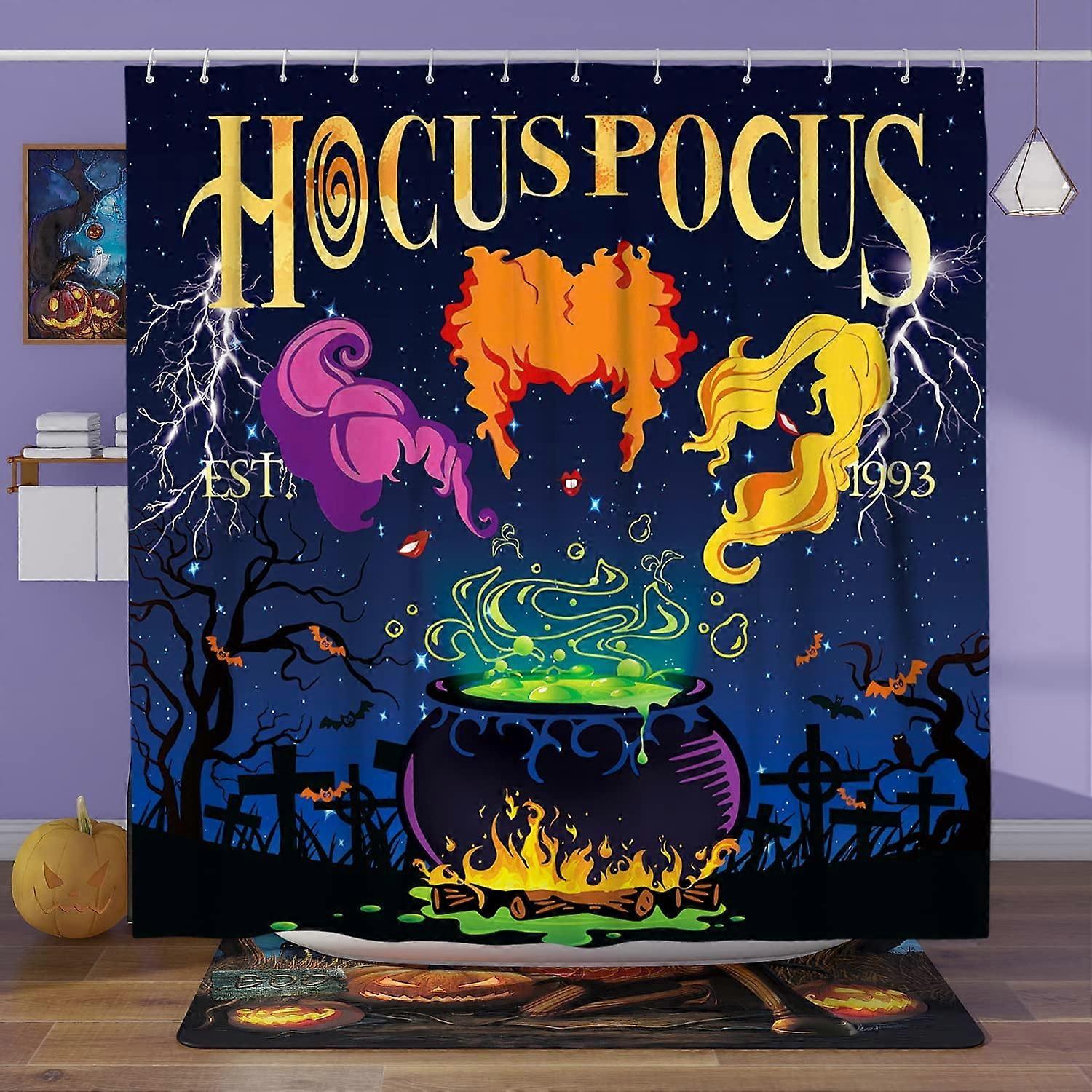 Halloween Shower Curtain Set 72"x72" Waterproof, Hocus Pocus Bath Decor, Party Gifts & Indoor Decorations