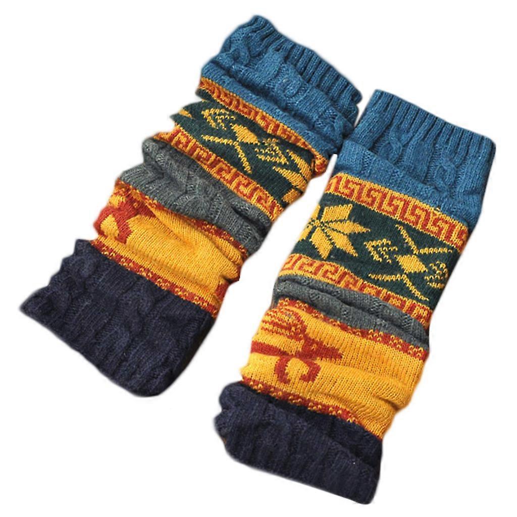 Women Christmas Winter Leg Warmers Sleeve Snowflake Reindeer Print Crochet Long Socks Twist Cable Knit Boot Cuffs Cover Lake Blue