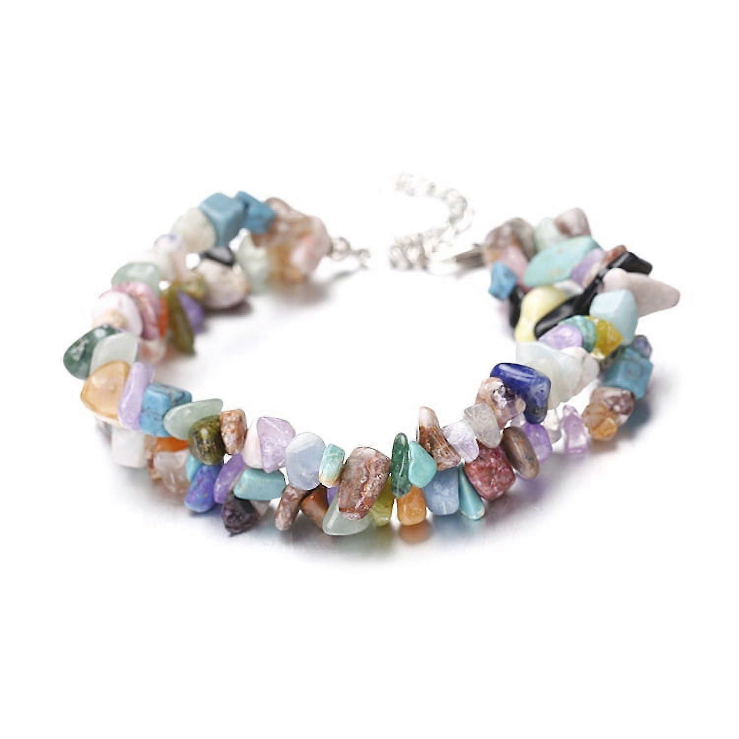 Nvzi-a Handmade Beaded Bracelet, Suitable for Men and Women, Double layered Natural Stone Crystal Bracelet (Colored)