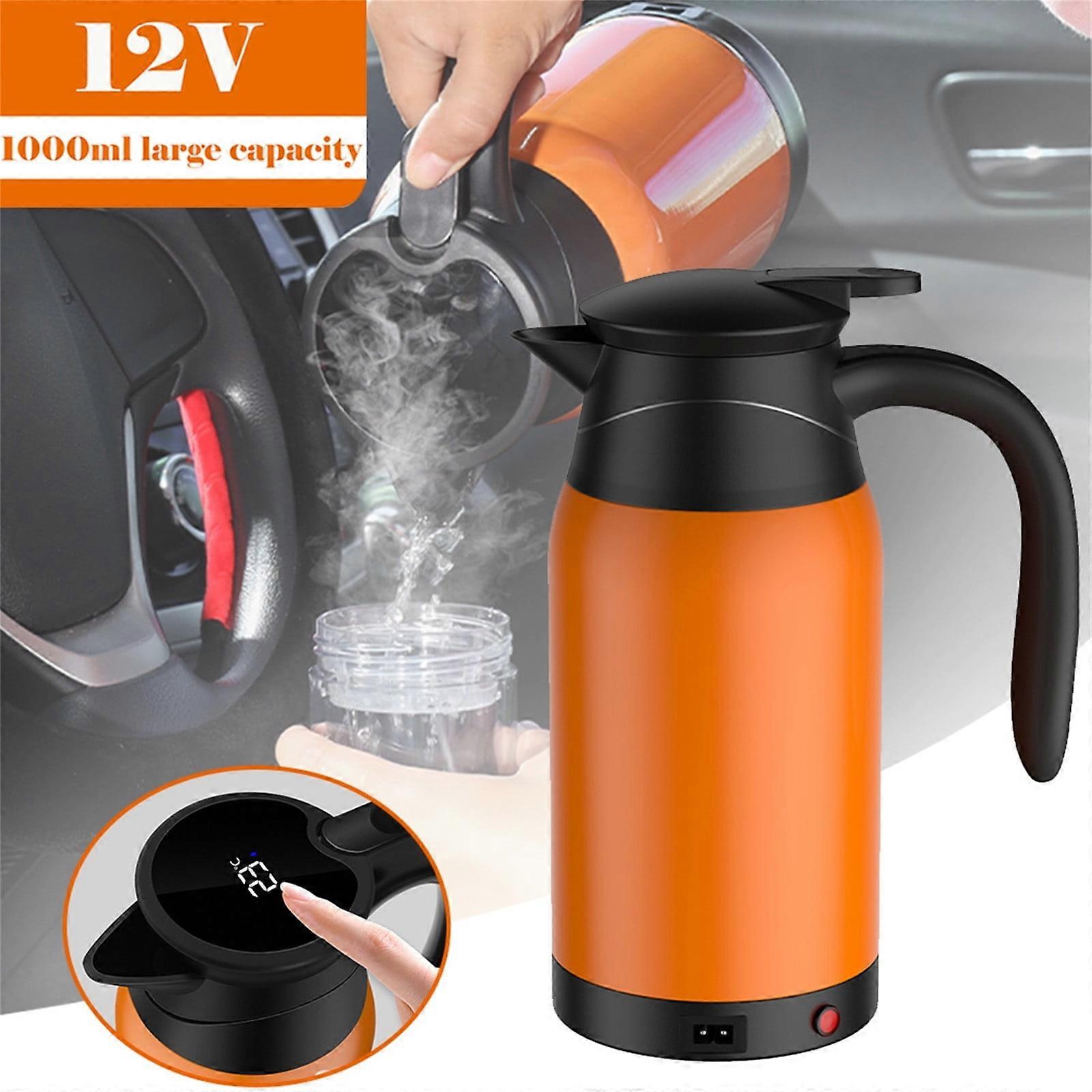 Hot Deal, 12V Car Heated Mug, 1000ML Water Kettle for Car Travel, Stainless Steel Heating Cup for Hot Drinks on the Go | metal, Orange, Akmoler