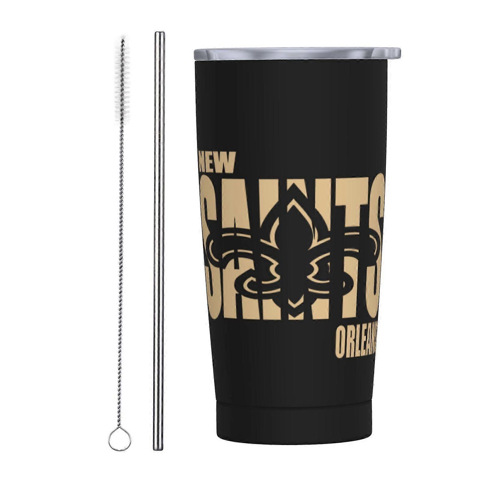 Saints 20 oz Car Straw Cup, Stainless Steel Insulated Travel Cup with Straw & Brush, Fan Gift (compatible with Saints)