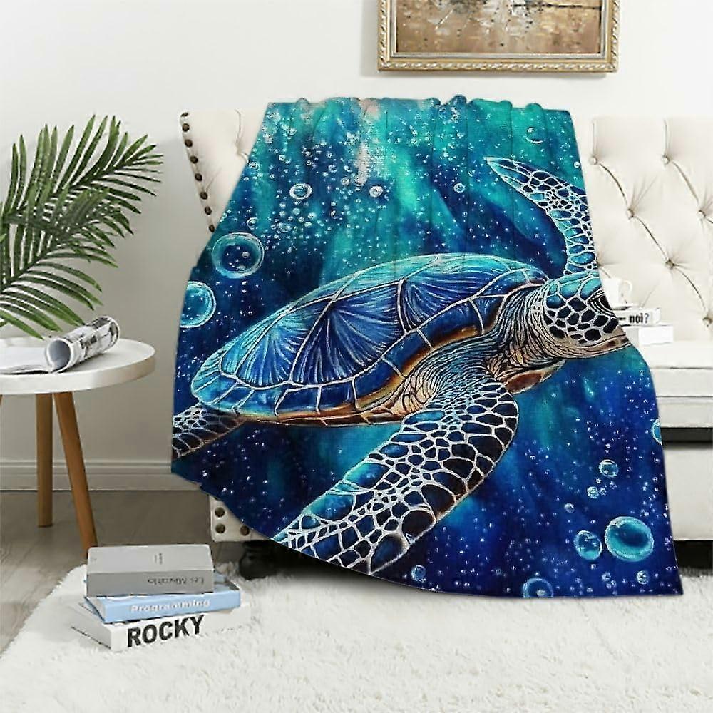 Oceanic Turtle Throw Blanket - Soft, Lightweight, Warm Flannel, Compatible with Couch, Bedroom, Travel - 60x80in