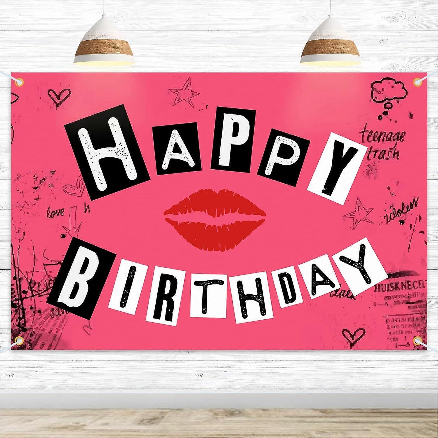 Happy Birthday Backdrop Banner - Hot Pink Y2K Aesthetic, Burn Book Theme Decor for Teens & Women, Room Decoration Supplies