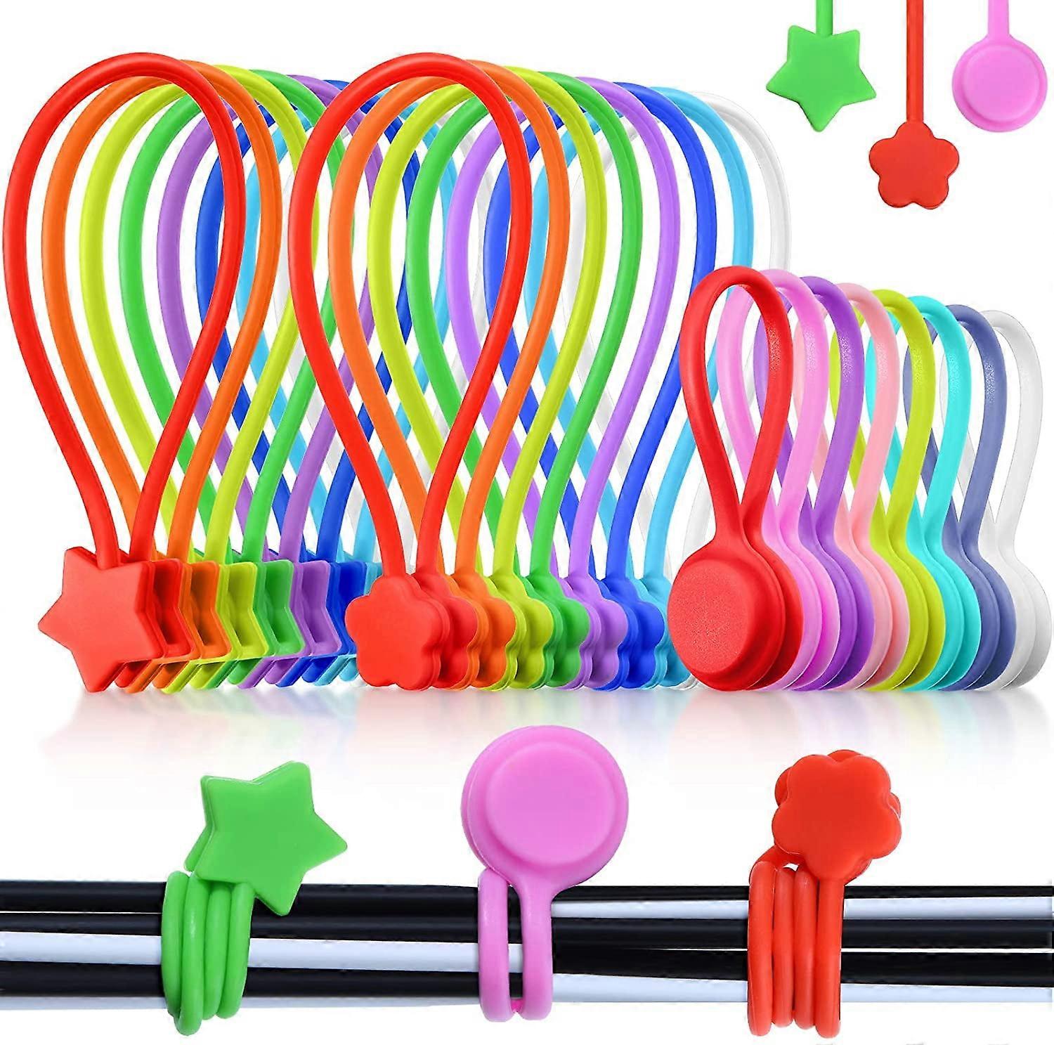 32 Pcs Magnetic Cable Ties Silicone Cable Management Ties Magnet Twist Ties Reusable Cord Clips for Bundling,