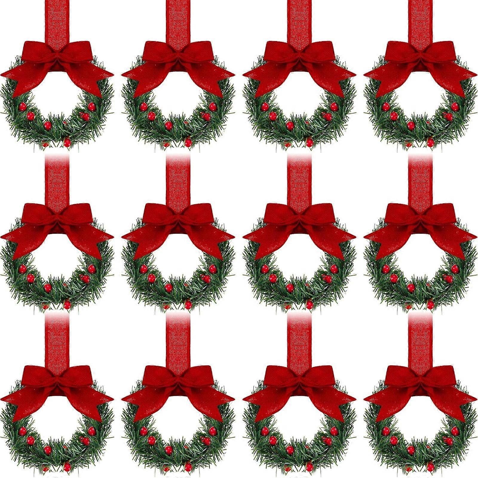 12 Pcs Christmas Kitchen Cabinet Wreaths with Ribbon 3.94 Inch Mini Christmas Wreath Small Kitchen Wreath Greenery Wreath for Window Door