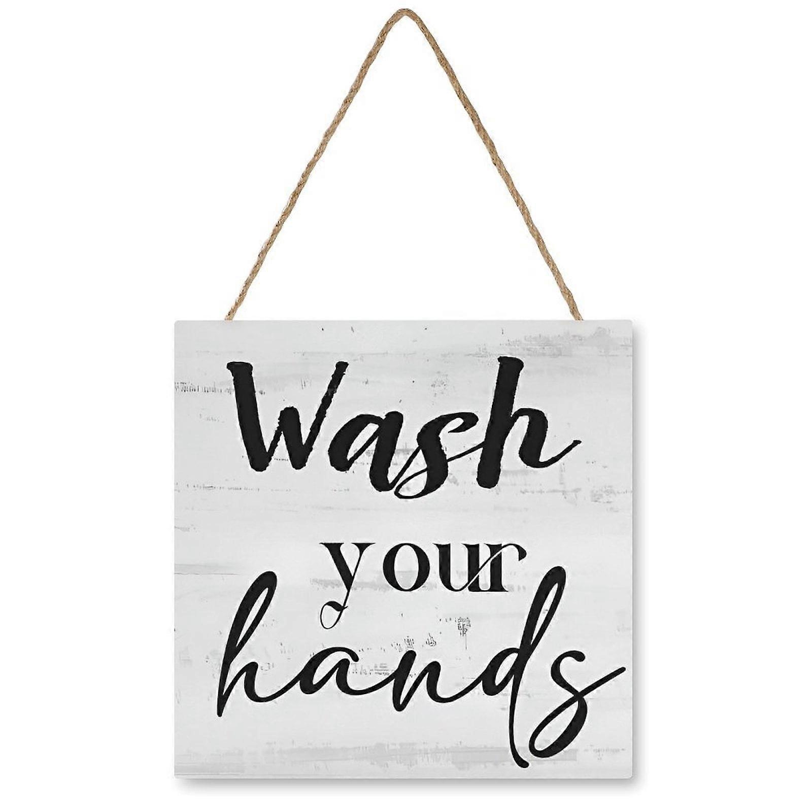 Funny Wooden Signs Wash Your Hands, 12x12 inch Decorative Plaques, Farmhouse Hanging Signs, Inspirational Quotes, Home Decor