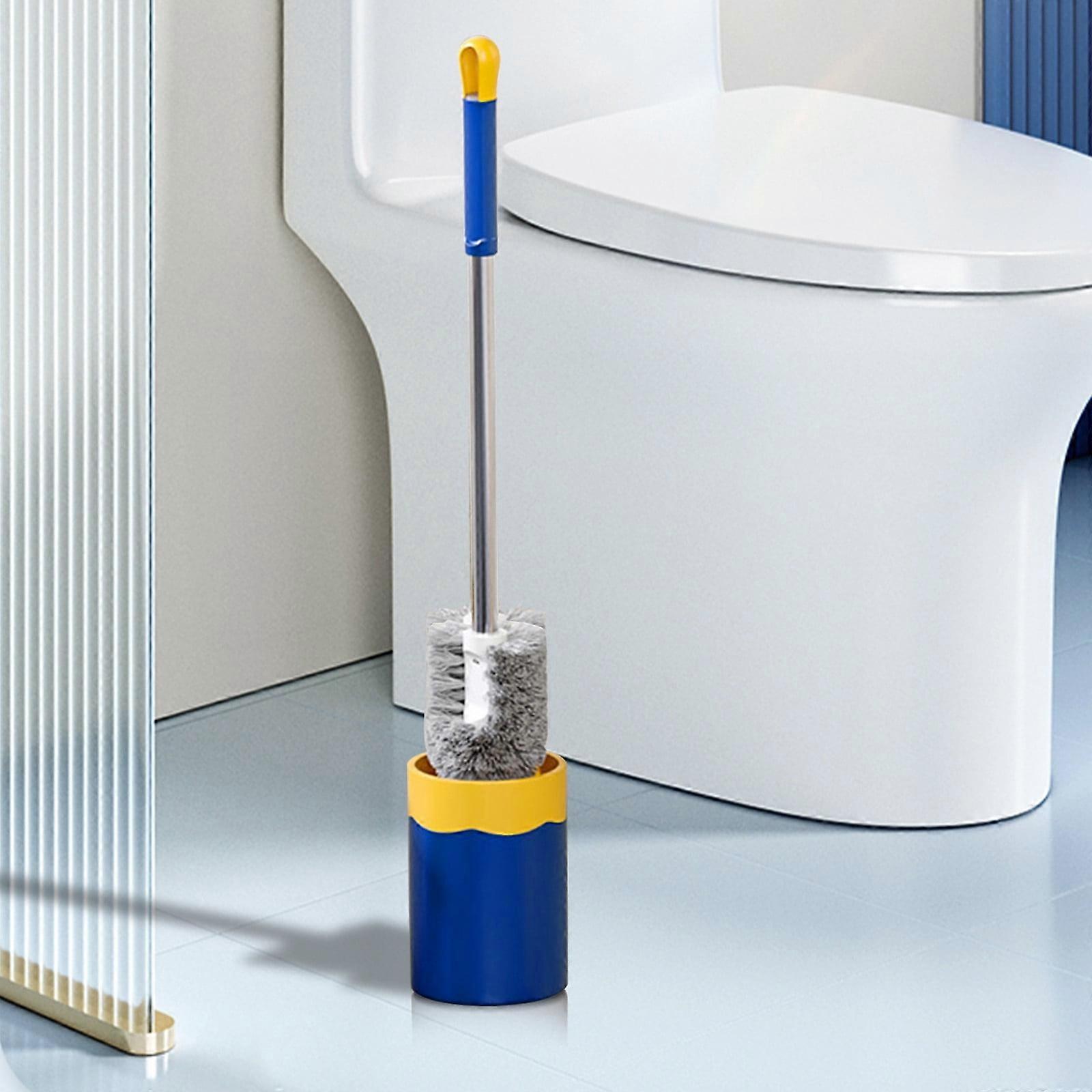 Toilet Brush and Holder with Long Handle, Hard Bristles, Modern Compact Design - Bathroom Cleaning Bowl Brush Kit