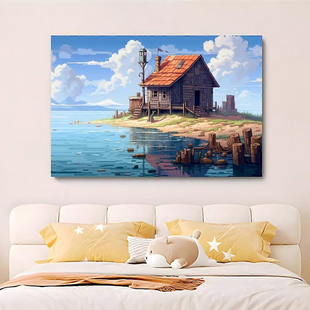 A Hut By The Lake Canvas Poster Bedroom Decor Sports Landscape Office Room Decor Gift,Frame-style,12x18inch(30x45cm)