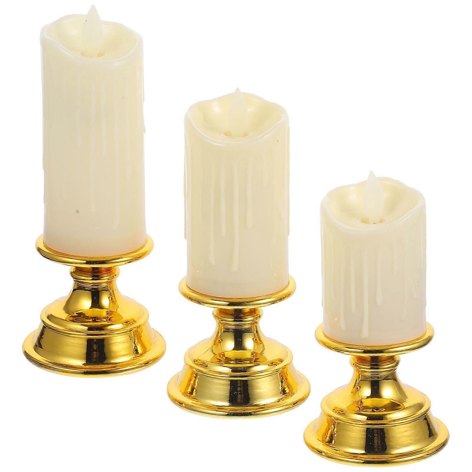 White 3 Pcs Plastic Battery Operated Candles Golden Light Window Artificial Wedding