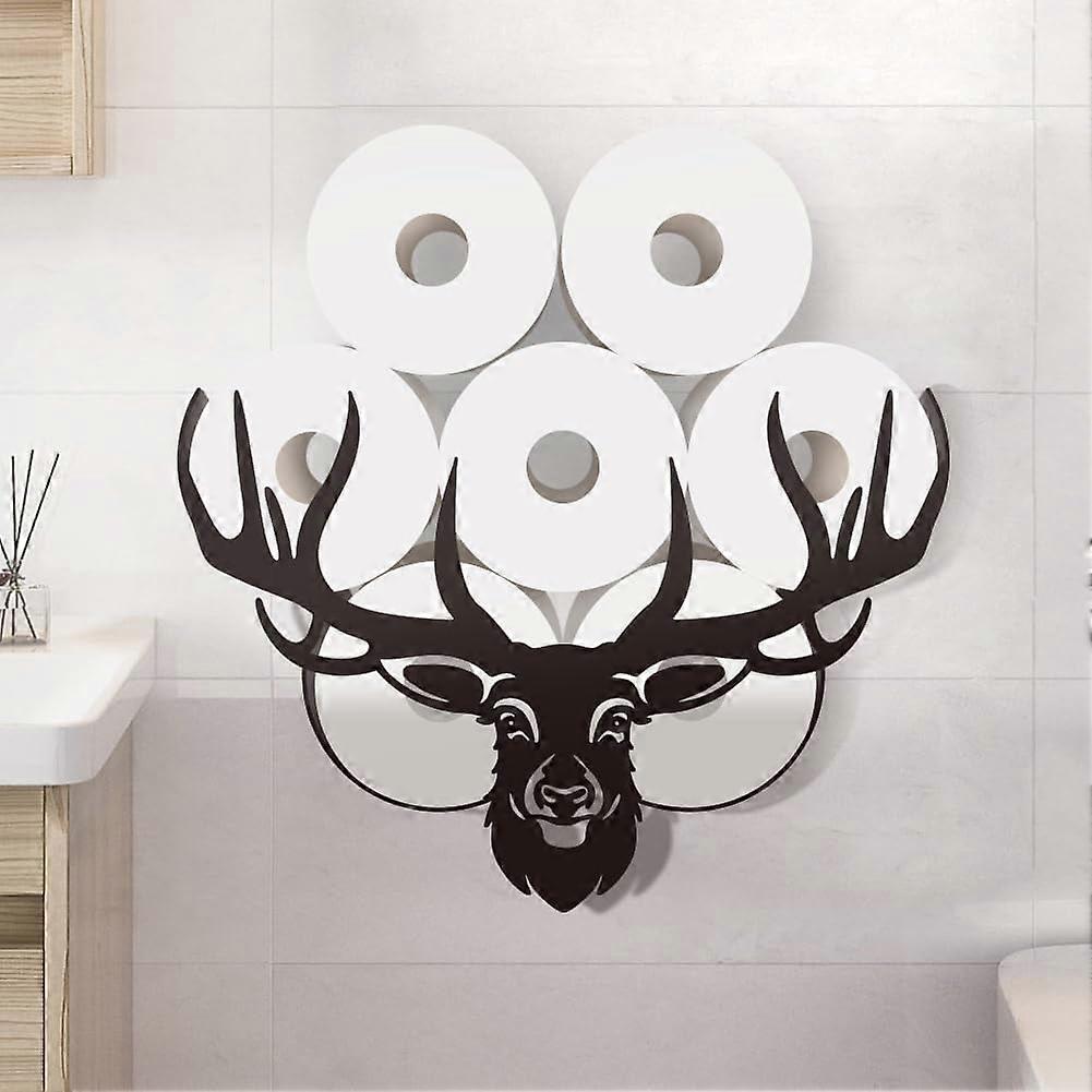 DIY Black Deer Head Toilet Paper Holder, Iron Antler Wall Mounted Organizer Compatible with Bathroom, Kitchen, Sitting Room Decor