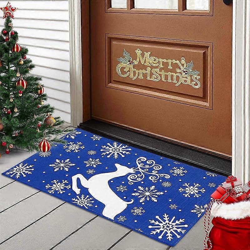 Christmas Doormat Holiday Mat Winter Deer Indoor/Outdoor Welcome Mat 16x24 Inch Red Rug for Entryway Front Porch Home Decor