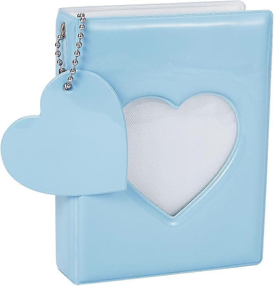 3 Inch Mini Photo Album Light Sky Blue, 32 Pockets + Heart Pendant Keychain, Compatible with Kpop Photocards & Pictures