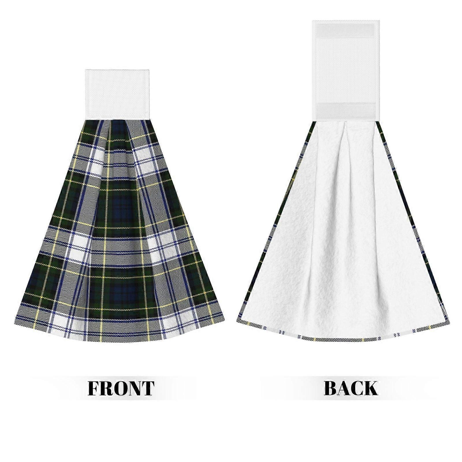 Gordon Dress Tartan Plaid Hand Towels With Velcro Loop, Coral Velvet Hand Wipes For Kitchen & Bathroom