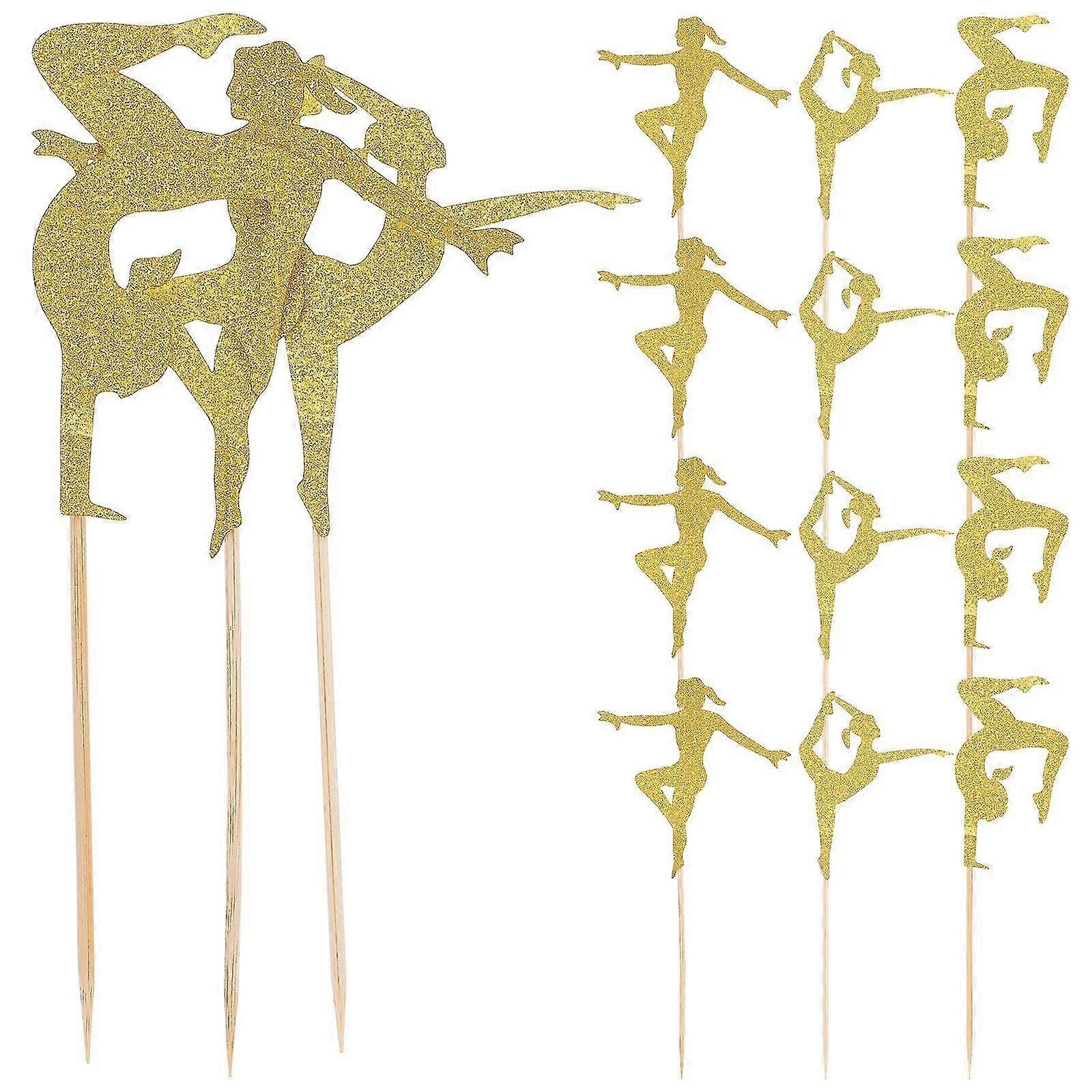 24pcs Gymnastic Cupcake Topper Gymnastic Girl Pattern Theme Party Cupcake Pick16.7x4.4cmGolden szsh02
