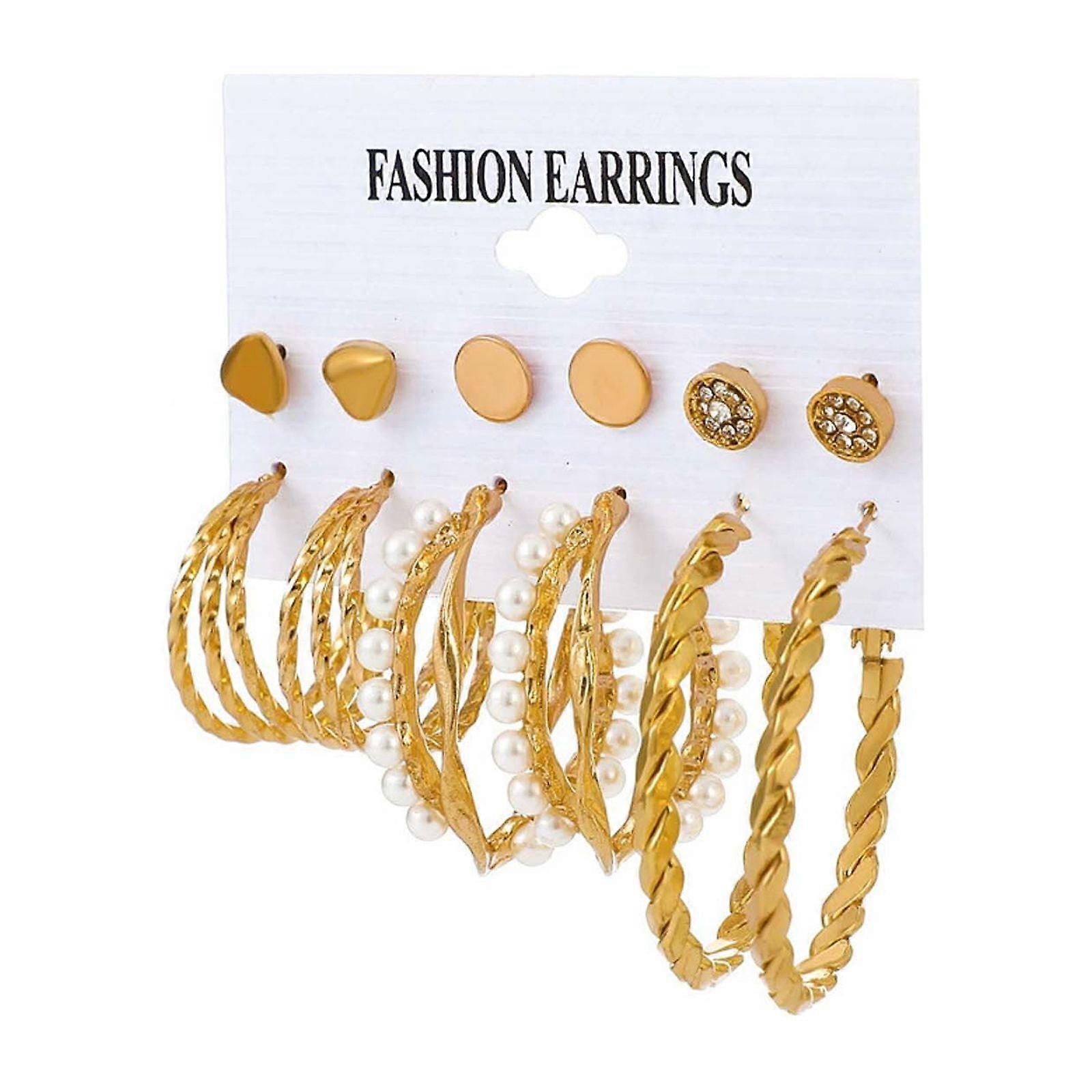 Kiplyki Exaggerated Metal Geometric Earrings Fashion Personality Earrings Pearl Earrings Set Woman Gift