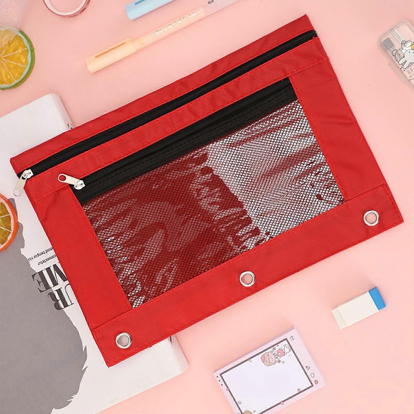 HKUKY Double Zipper Pencil Bag Transparent Mesh File Bag Zipper Binder Pencil Bag Pencil Bag