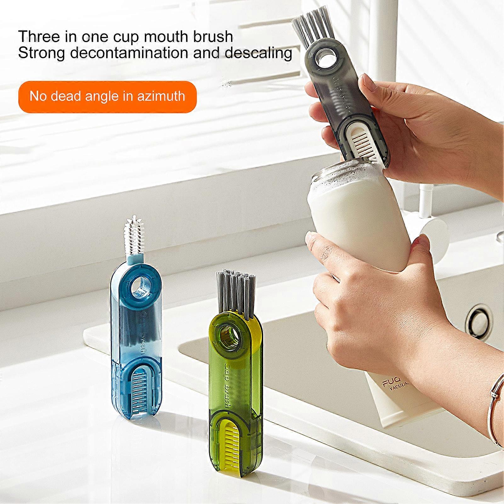 SUSUchens Cup Cover Cleaning Brush, 3-in-1 Hard Bristle, Comfortable Grip, Labor-saving, with Hanging Hole, for Baby Bottle Gap, Household Use, Green