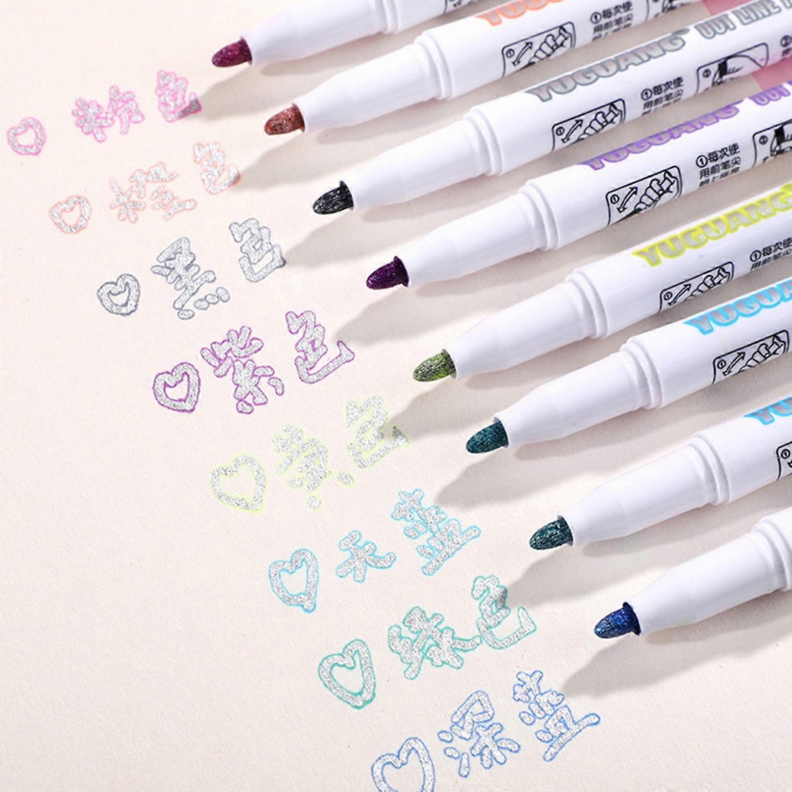 Begine Line Outline Pen Clearance,Double Line Outline Pen Double Line Pen Fantasy Color Fluorescent Marker Pen Metal Color Pen 8 Colors