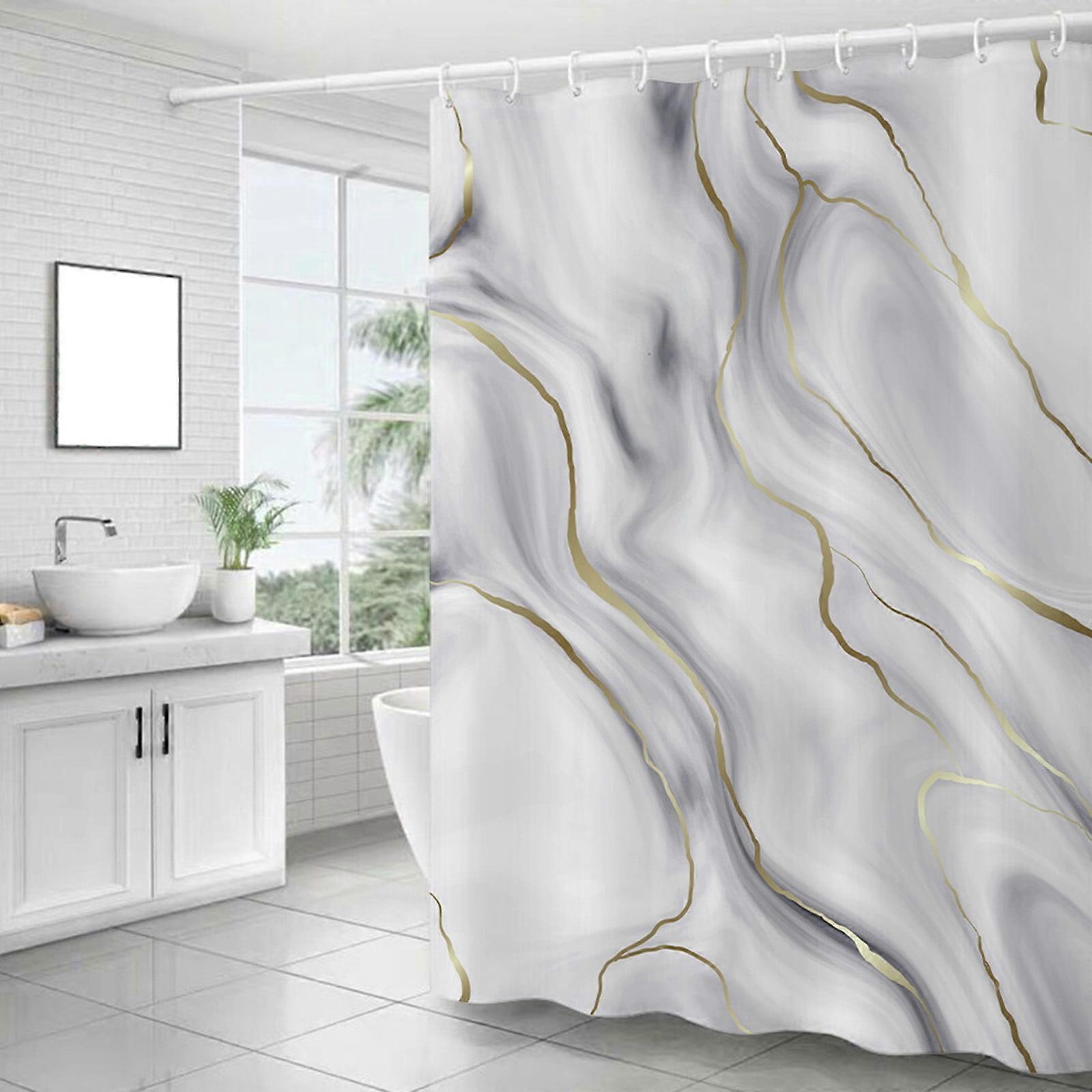 Kayannuo Clearance Polyester Shower Curtain, Waterproof with Weighted Hem, Compatible with Standard Showers, Abstract Modern Ink Design