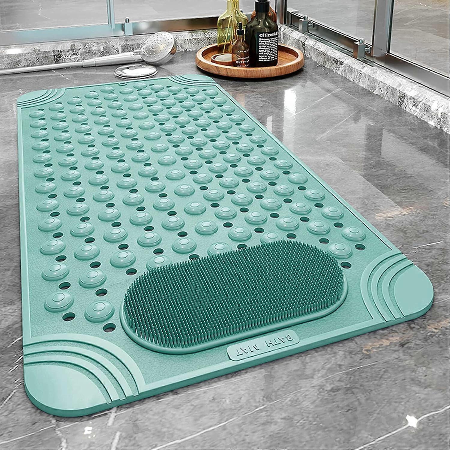 Fymlhomi Bathtub Mat Non-Slip Rubber with Drain Holes & Suction Cups, Machine Washable (27.5×14.2in, Blue)