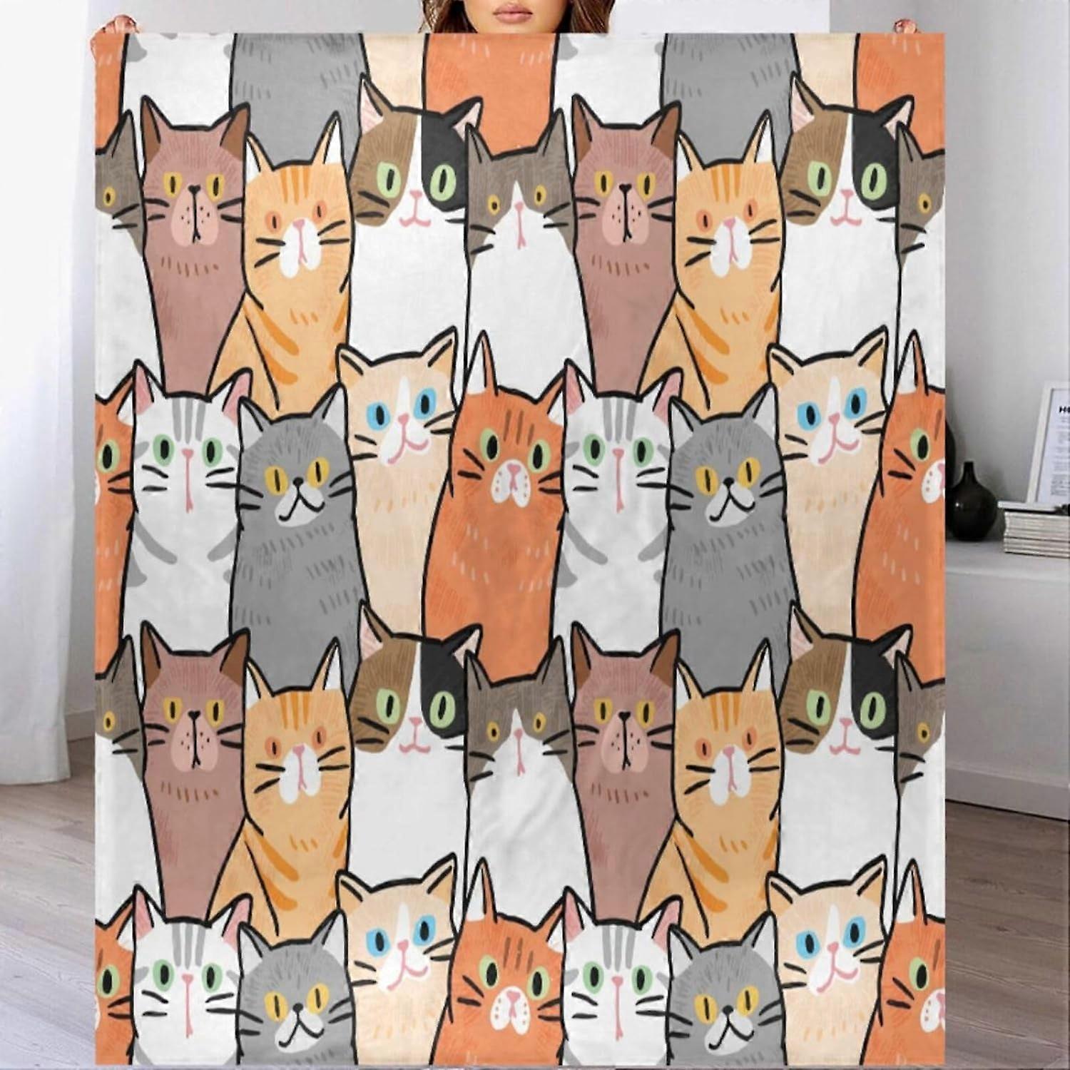 Funny Cute Cats Throw Blanket 50x60 Inches, Soft Cozy Flannel Fleece, Lightweight Warm Fuzzy Blanket for Couch, Bed, Sofa, Chair