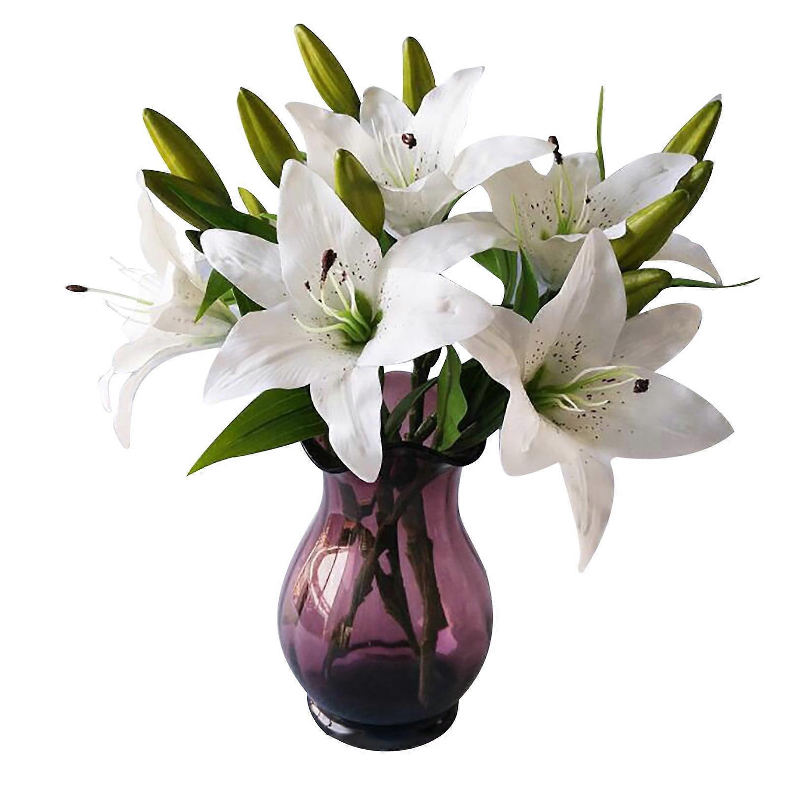 Artificial Lily Flowers with Long Stems, White Fake Lily Bouquet for Home, Wedding, Party, Cemetery Decor, Compatible with Vase Pots