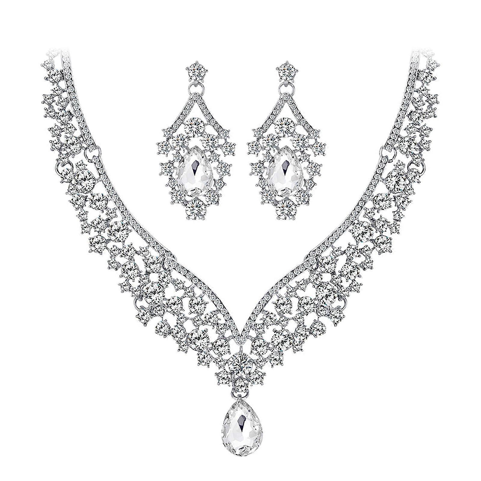 Tarmeek Alloy Rhinestone Necklace & Earrings Set for Women, Wedding Party Jewelry, Valentines Day Gifts, Couples Gifts for Husband and Wife