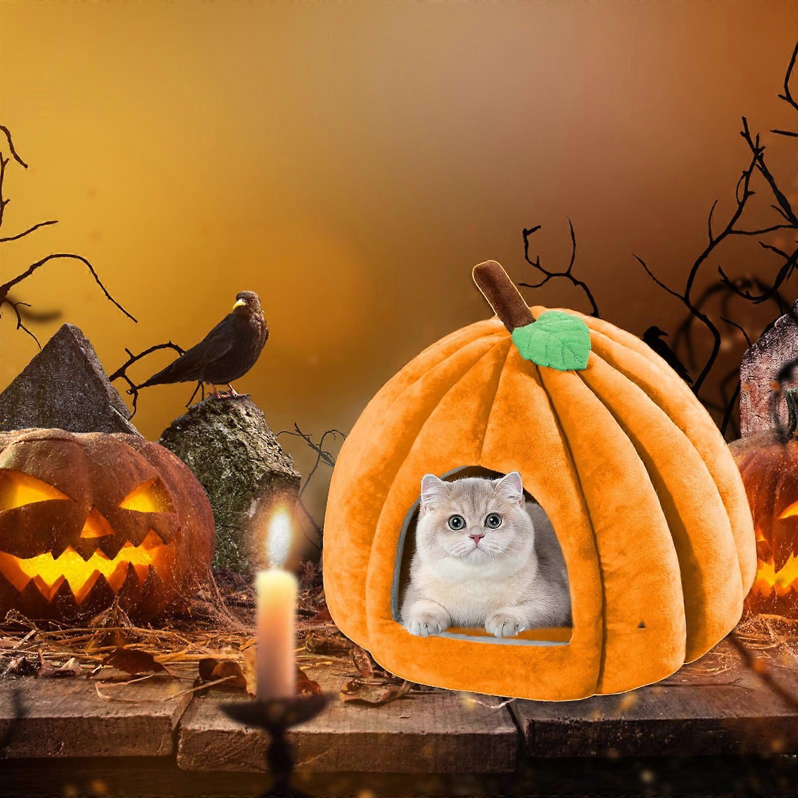2 Packs Creativity Pet House Indoor, Detachable Washable Cute Dog Cat Bed, Insulated Cozy Pet Dog Pumpkin Cave, For Cats and Puppies, Halloween Gift