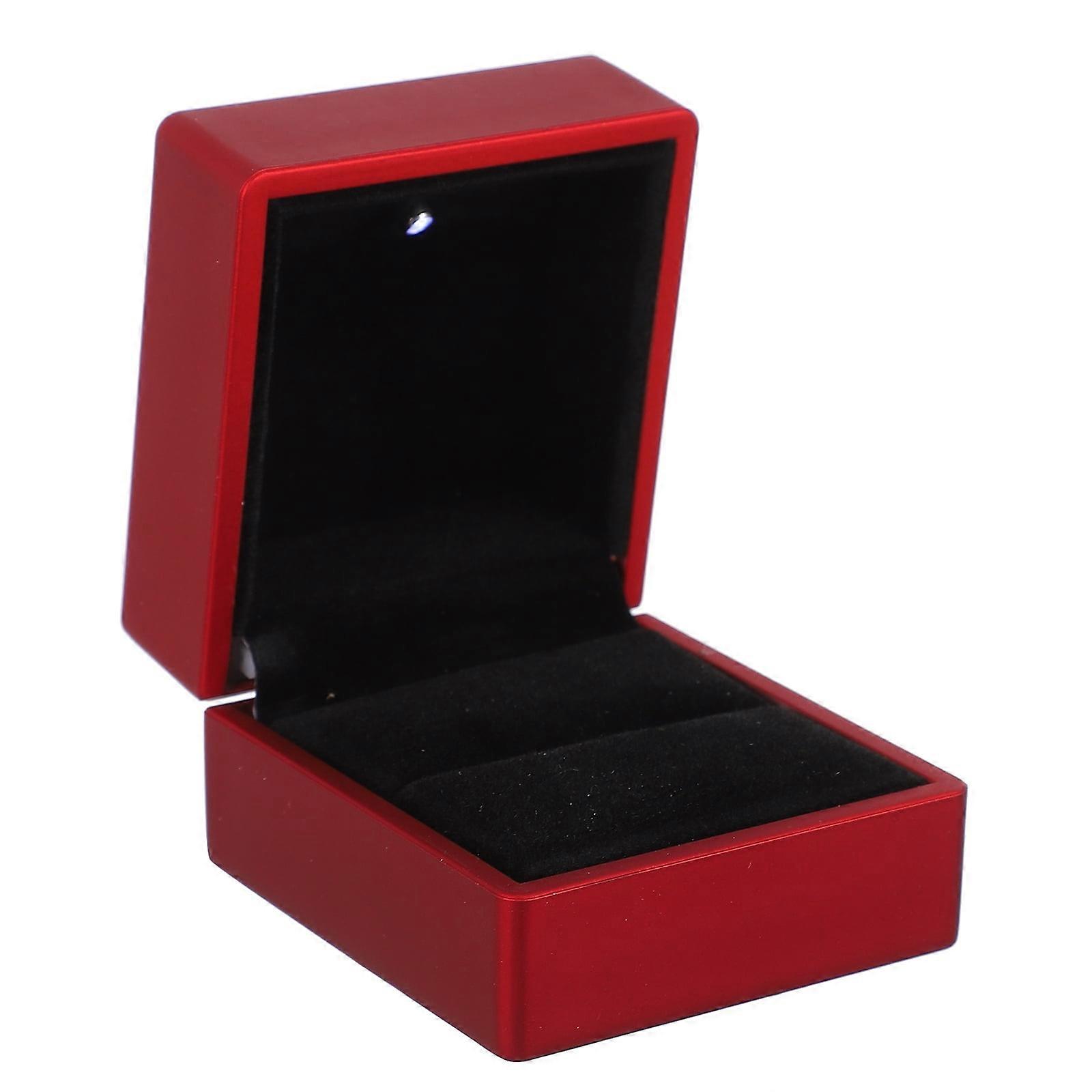 LED Ring Box Toothbrush Travel Case Square Boxes for Gifts Decor Large Jewelry Necklace Red Lacquered Wood