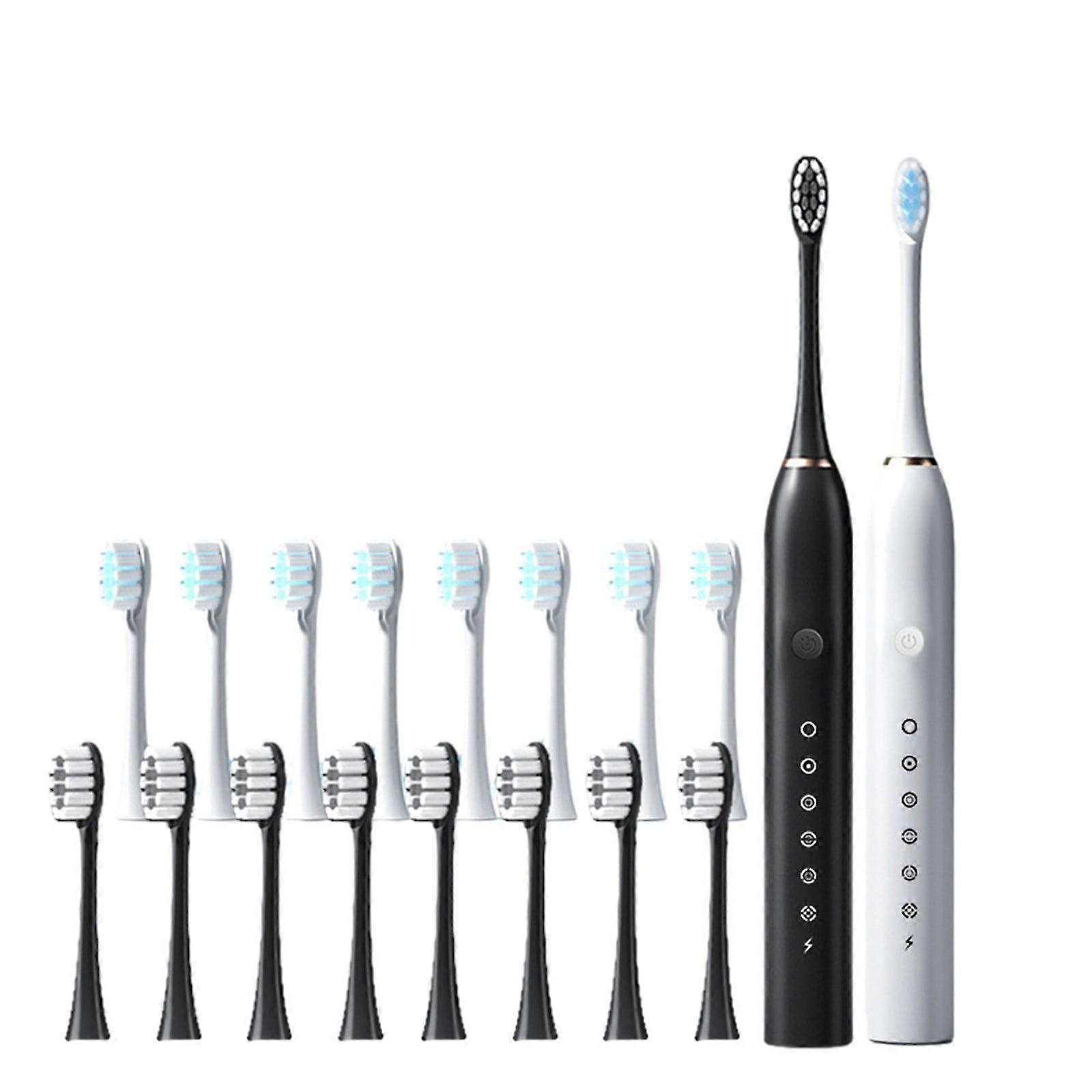 Toothbrush Set Gnobogi Couple's 2-Pack Electric Toothbrush + 8 Heads - 6-Speed USB Rechargeable, Soft Bristle, compatible with xxx