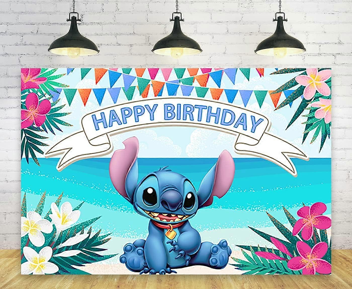 lilo and stitch birthday party decorations Includes 1 PCS backdrop; backdrop stand and clips are not included Dimensions: 5 ft wide and 3 ft high (150x90 cm), ideal for party cake table decorations Made from polyester; soft, lightweight, and features realistic colors that won't fade Washable and reusable; simple ironing removes creases and wrinkles Easy to hang with clips on a backdrop stand or tape to a plank wall due to its lightweight design