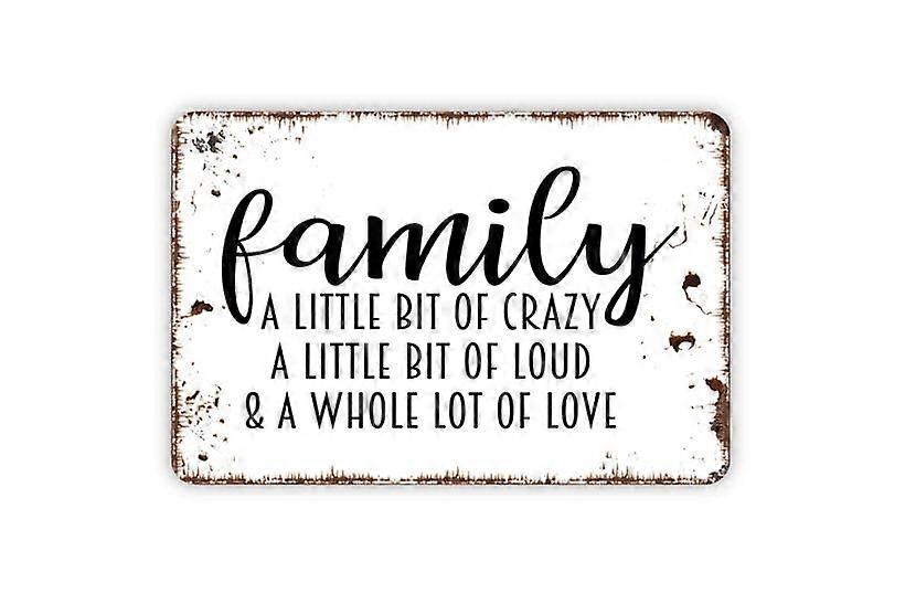 (Aluminum metal) Family A Little Bit Of Crazy A Little Bit Of Loud and A Whole Lot Of Love Sign Farmhouse Metal Wall Art Size: 8 x 12 Inch