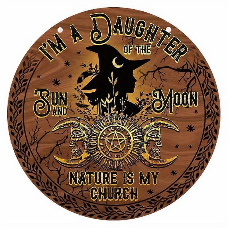 1pc Halloween Witch I Am A Daughter Of The Sun And Moon Round Wood Sign Door Hanger, Compatible with Home Bar, Garage, Hotel, Garden, Bedroom Decor