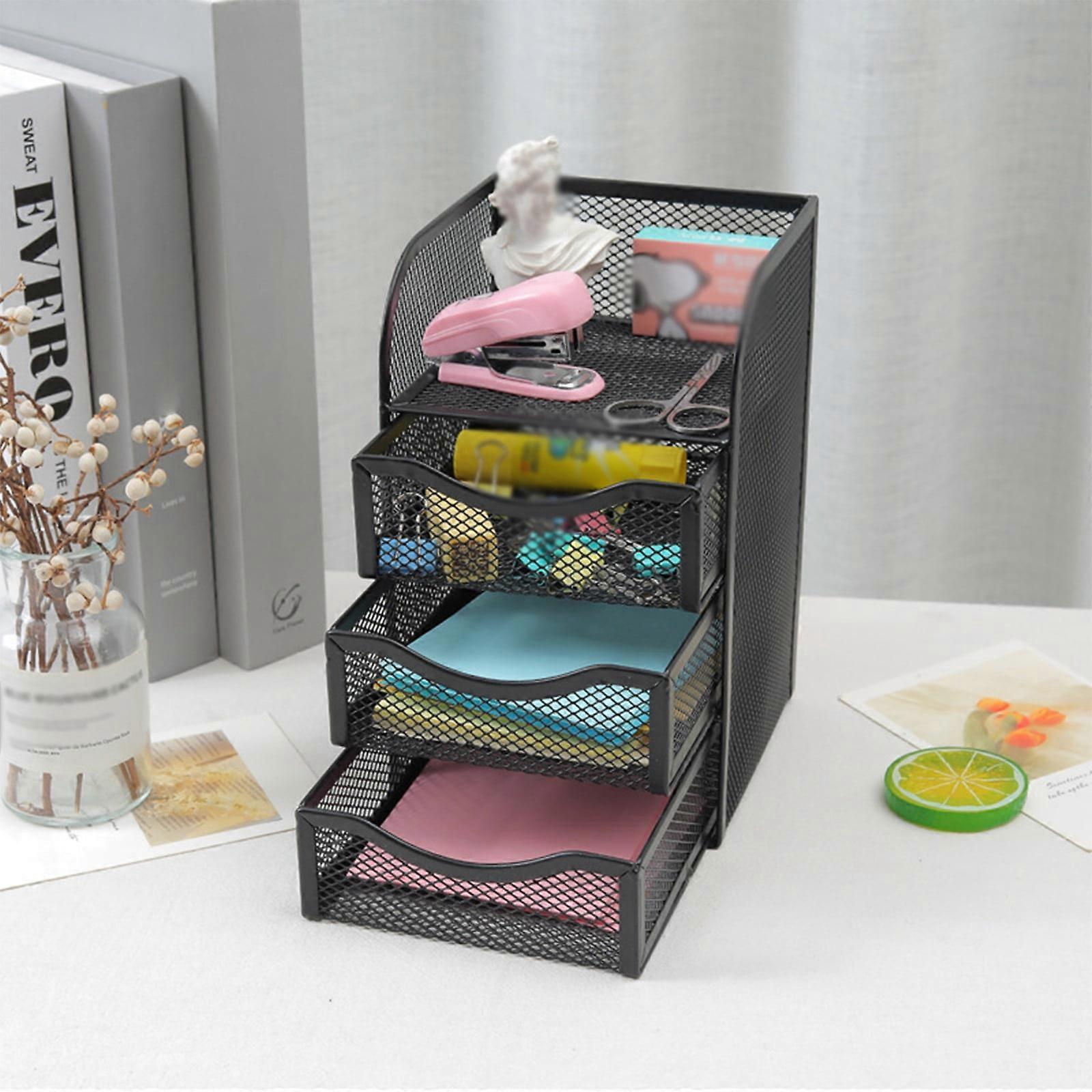 Black Friday Deals: Kcavykas Mesh Desk Organizer with 3 Drawers, Desktop Stationery Caddy - Black