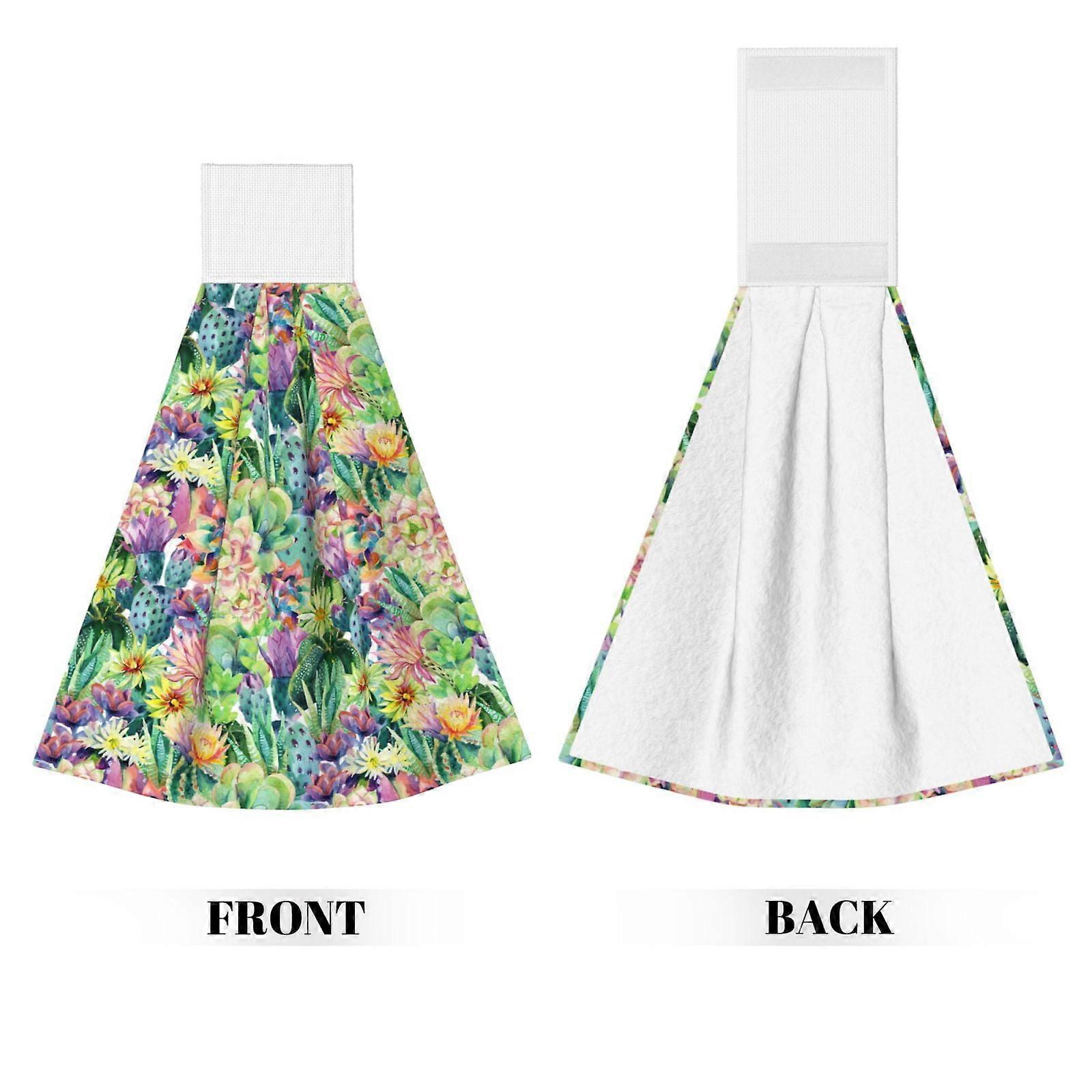 Cactus Bouquet Hand Towels With Velcro Loop, Coral Velvet Hand Wipes For Kitchen & Bathroom