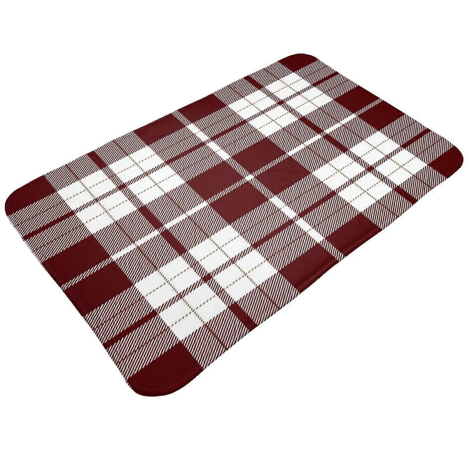 Red & White Tartan Plaid Door Mat, Non-Slip Washable Rug for Indoor Outdoor, 20x31.5 Inch, Christmas & Holiday Home Decor