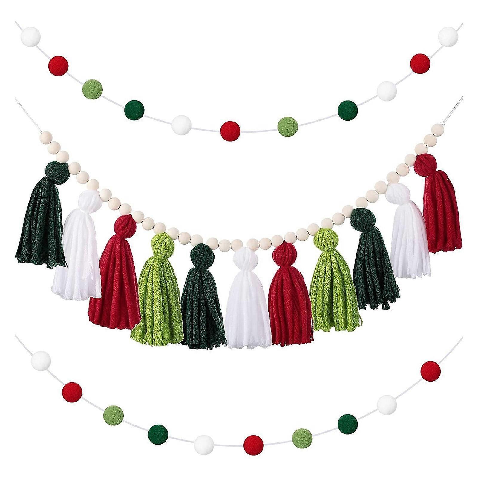 Clearance! Boho Tassel Garland Wall Hanging with Wood Beads & 2 Colorful Balls - Cotton Decor for Classroom, Birthday Gift