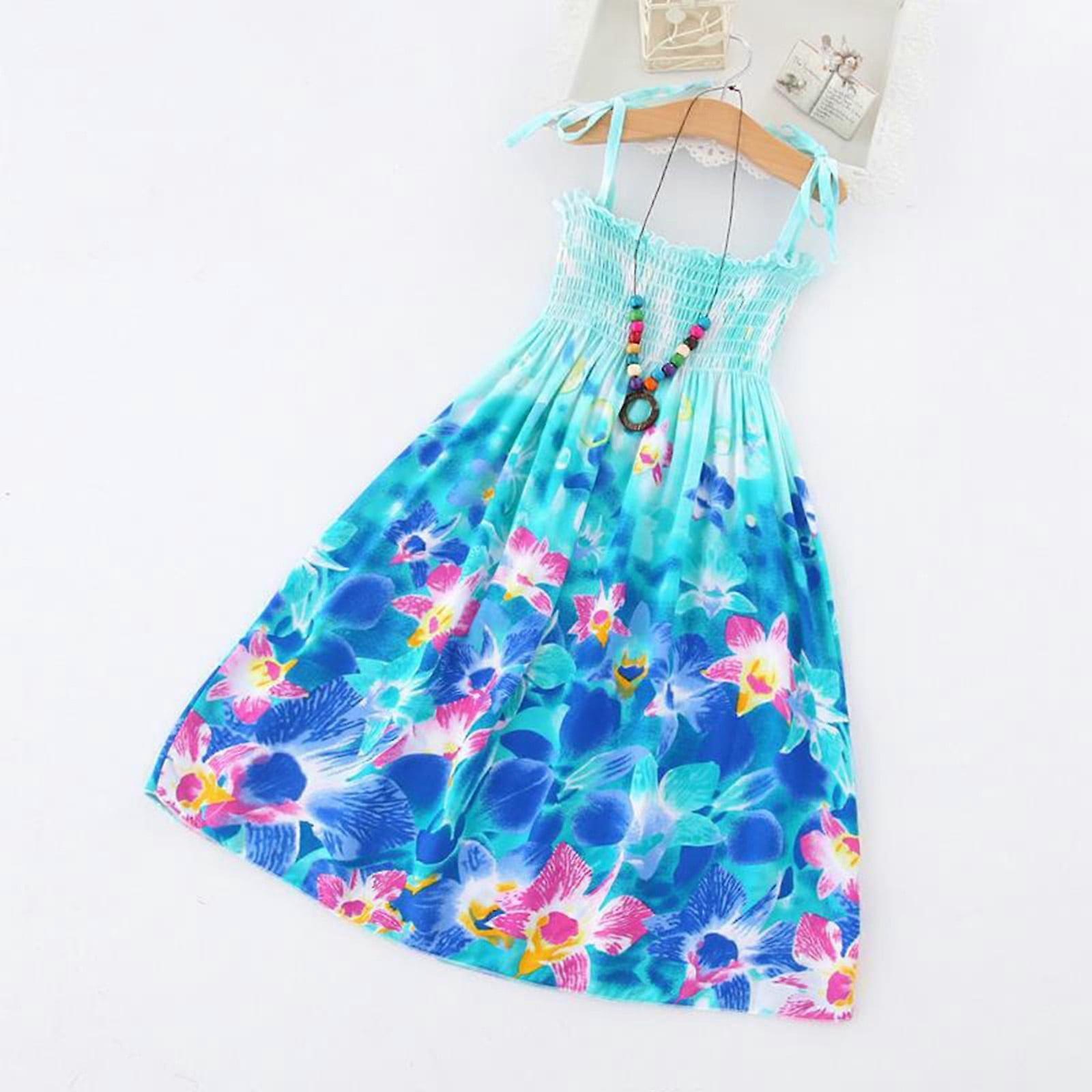 Miayilima Toddler Kids Girls Floral Bohemian Flowers Sleeveless Beach Straps Dress Princess Clothes