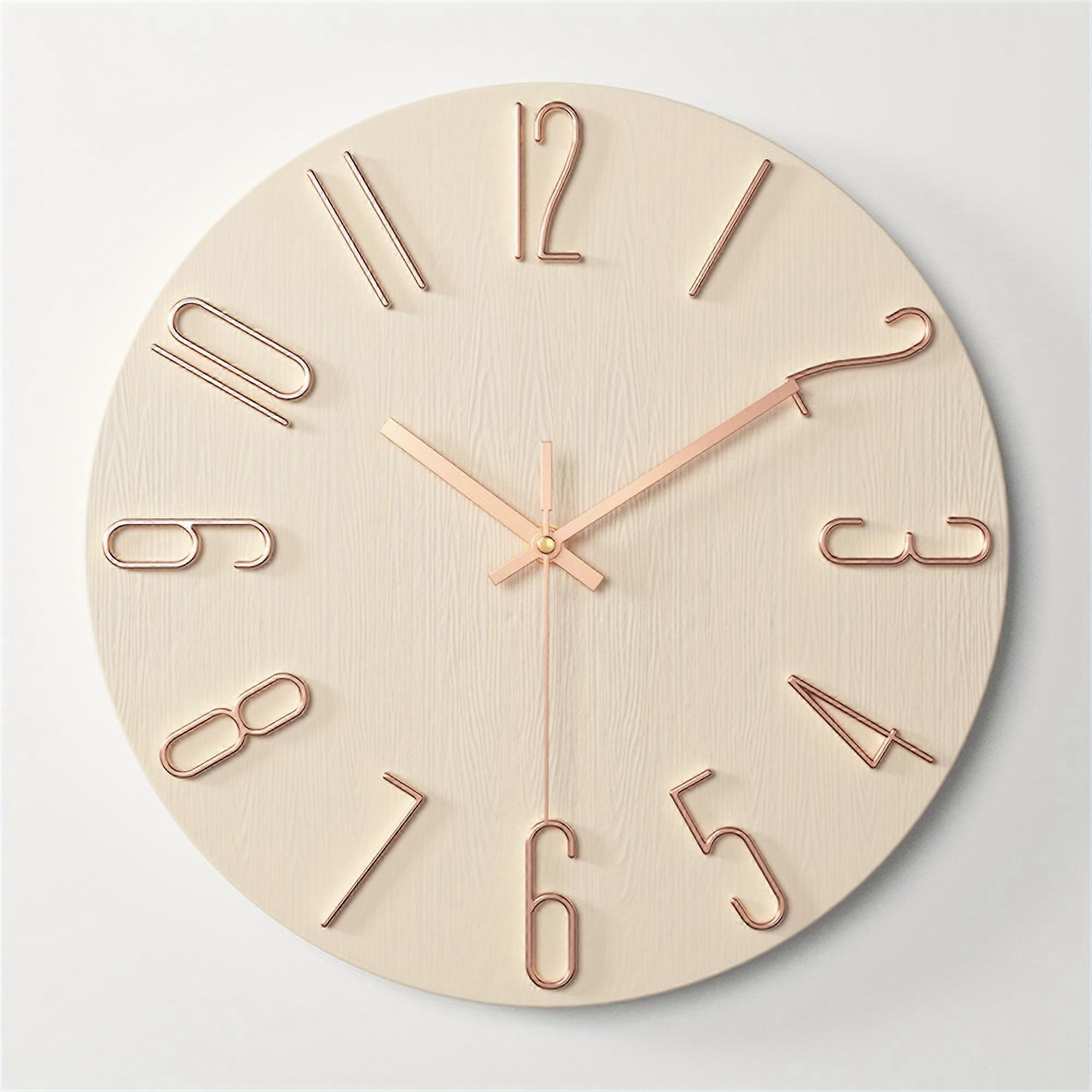 12-Inch Rustic Chic Silent Wall Clock - Plastic Frame, Simple Elegant Design, Battery-Operated, Easy Read, Quiet, No Frame, Ideal for Living Room,