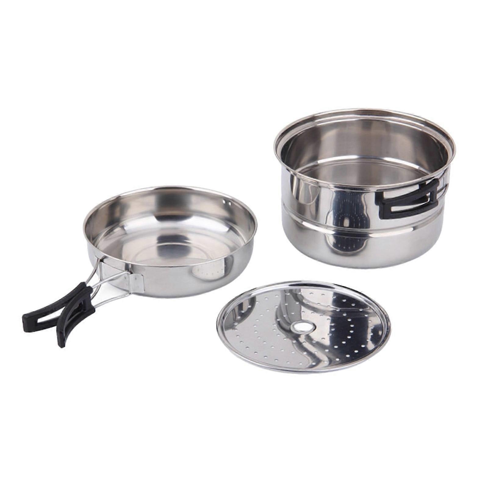 Uclet 3Pcs Camping Cookware Set Stainless Pot Frying Pan Steaming Rack Outdoor Home Kitchen Cooking Set